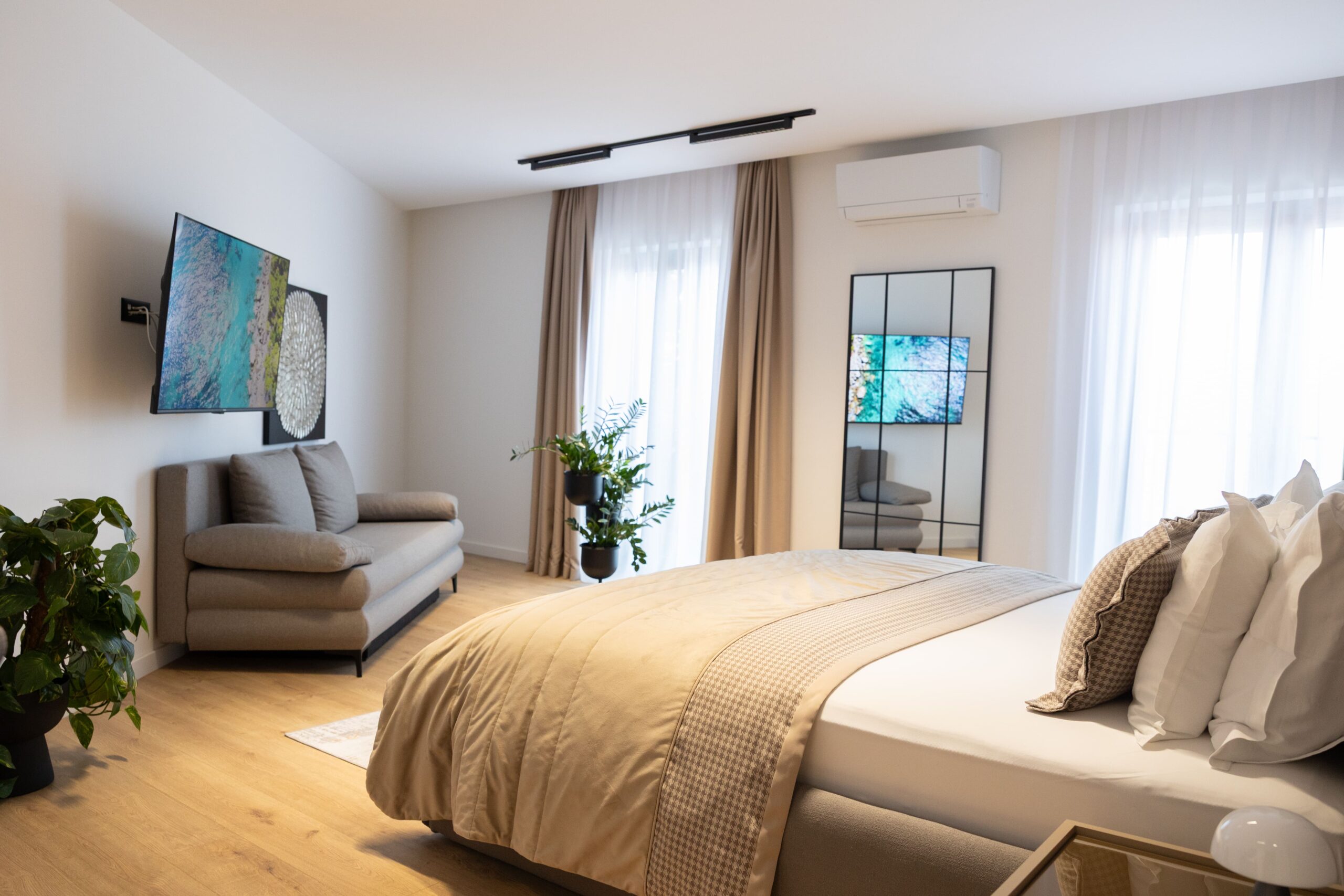 Our Grand superior apartment is a 93 m² apartment where we can accommodate 4 persons, apartment consists of two Bedrooms, two Bathrooms, living room with dining area and a fully equipped kitchen, it also has a private exit to the beach.