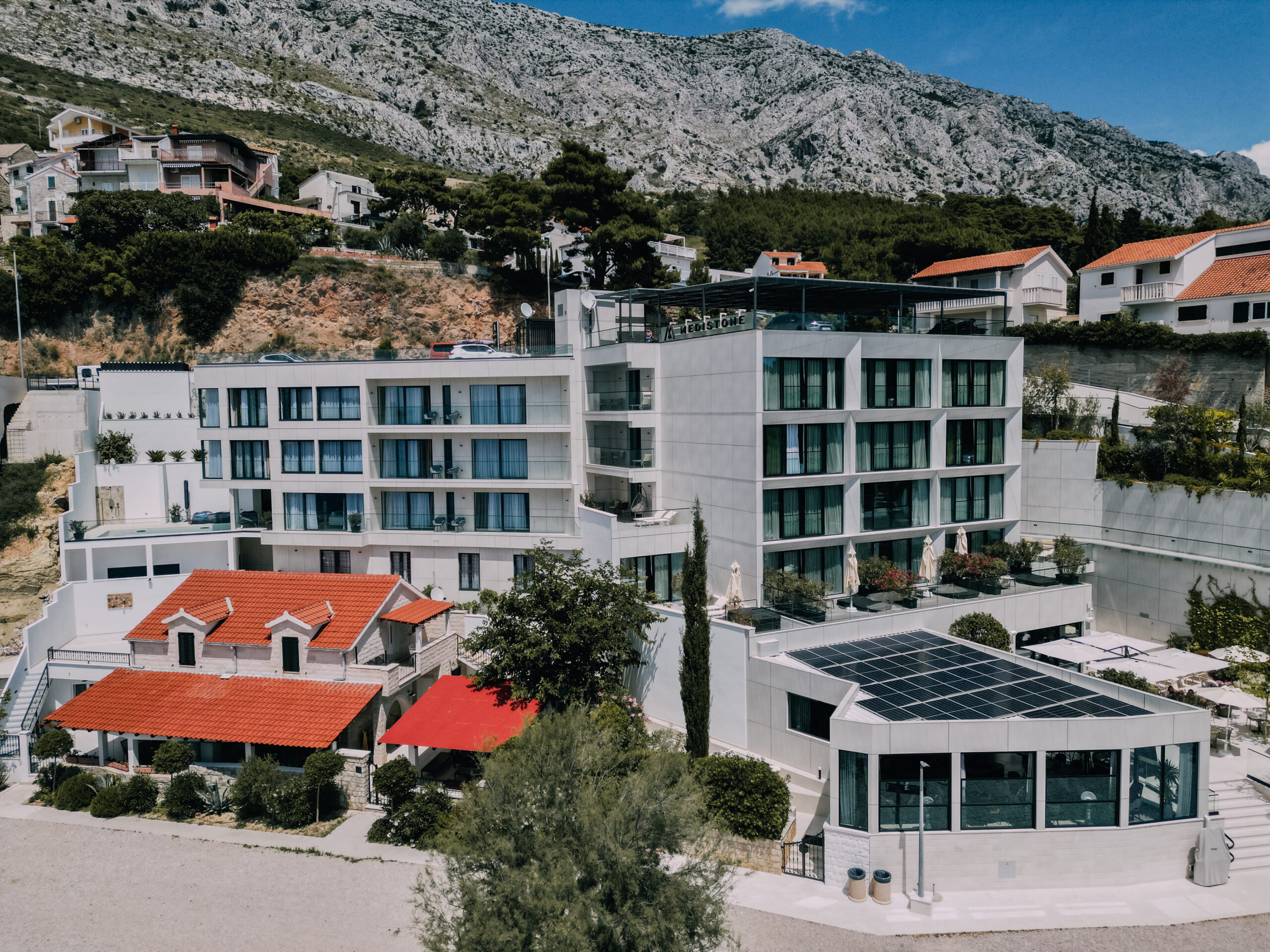 Guests of the Medistone Hotel have 20 parking spaces available on the roof of the hotel. The entrance to the hotel parking lot is directly from the Adriatic Highway (D8) – on the right side when coming from the direction of Split or on the left side if you are coming from the direction of Šestanovac and Makarska.