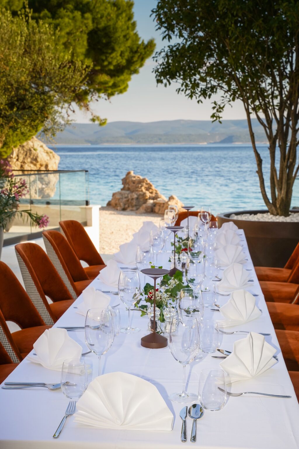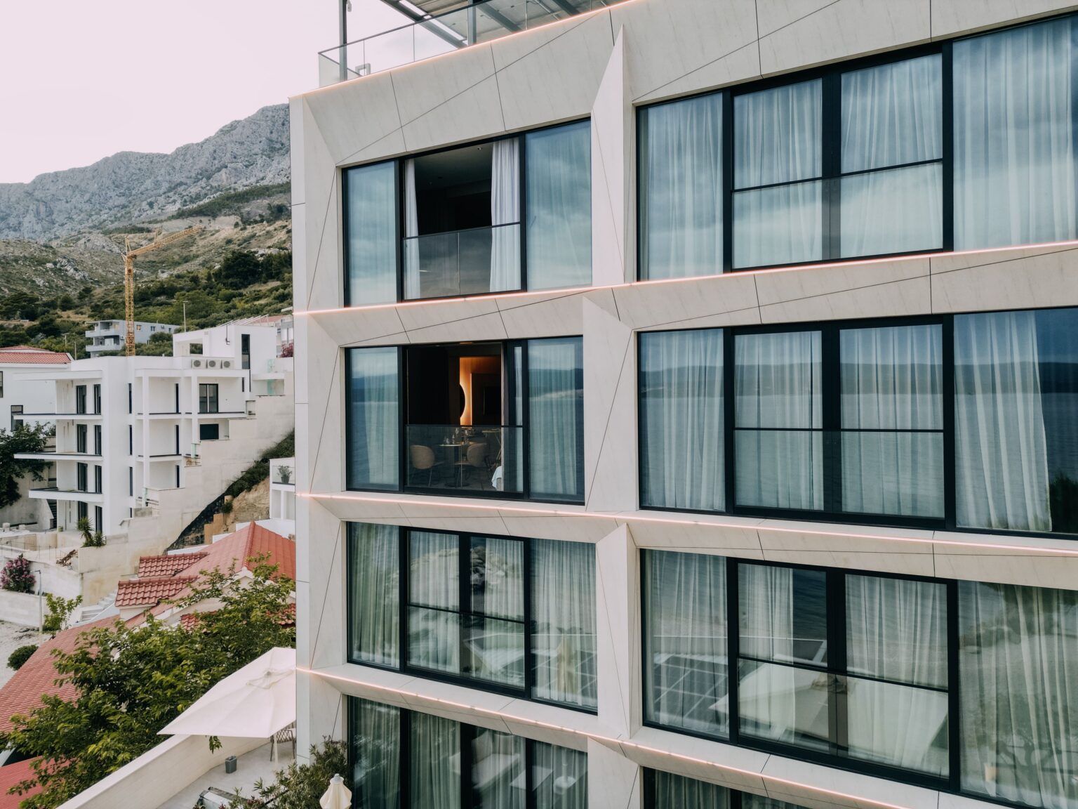 The resort is located at an approximately 10-minute drive from Omiš, a popular tourist town located at the mouth of the Cetina river in the Adriatic Sea. Omiš Riviera with apartments by the sea and pebble beaches. It is most appealing to couples and families with children who want to relax in the shade and spend their vacation in Croatia without overcrowding.